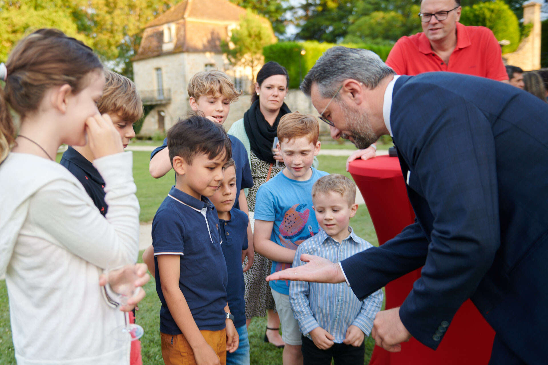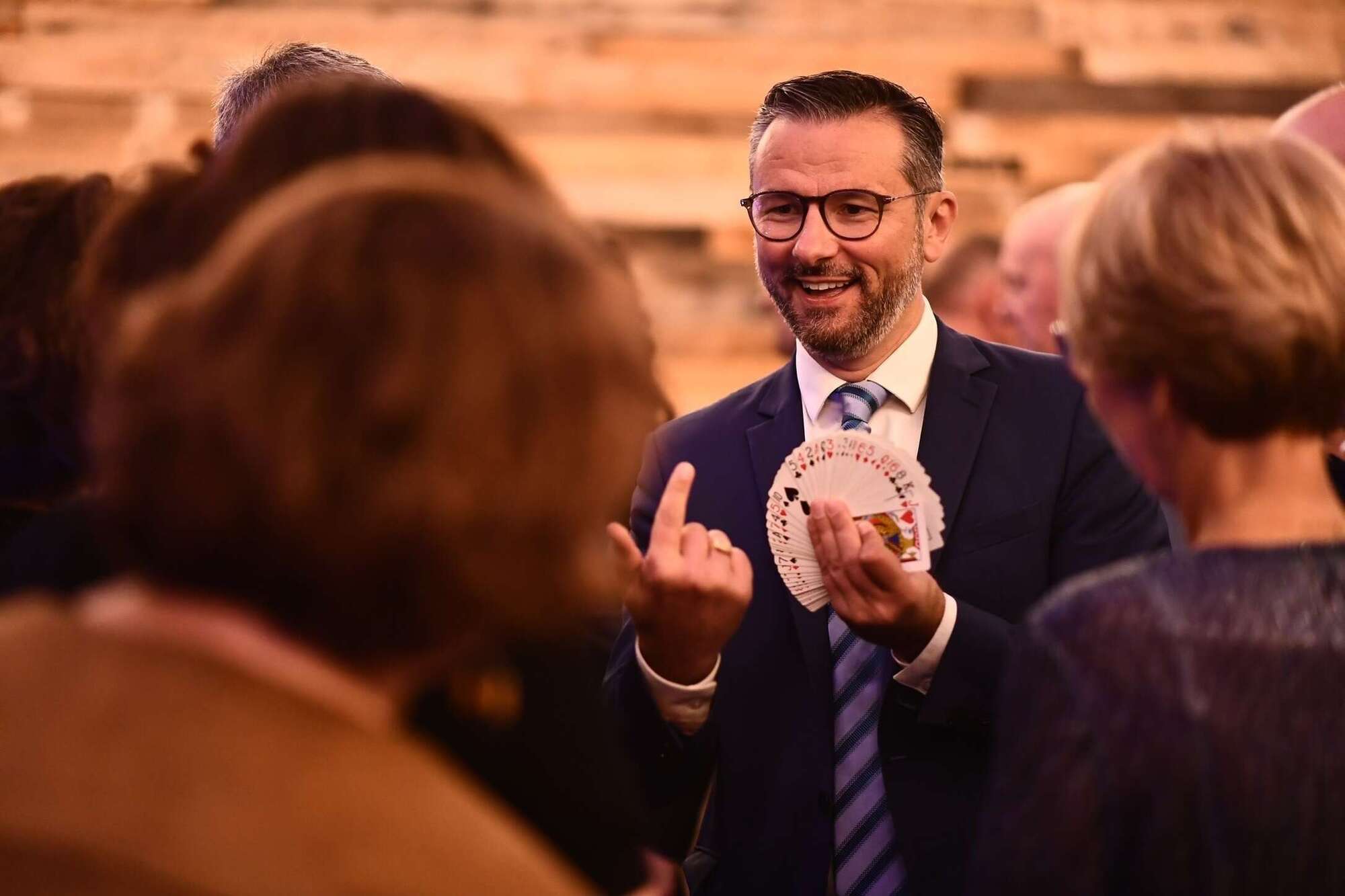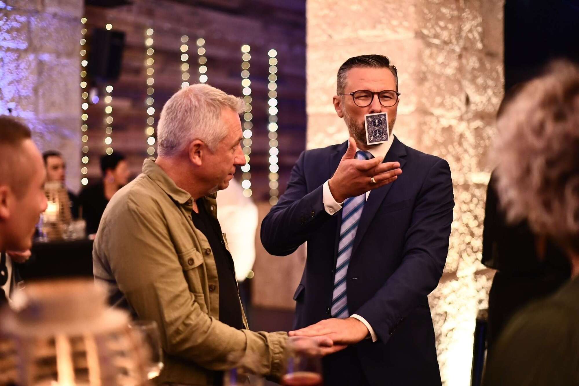 Il intervient directement au milieu de vos invités, crée du lien entre les tables et installe une atmosphère chaleureuse, avec une magie élégante et participative.